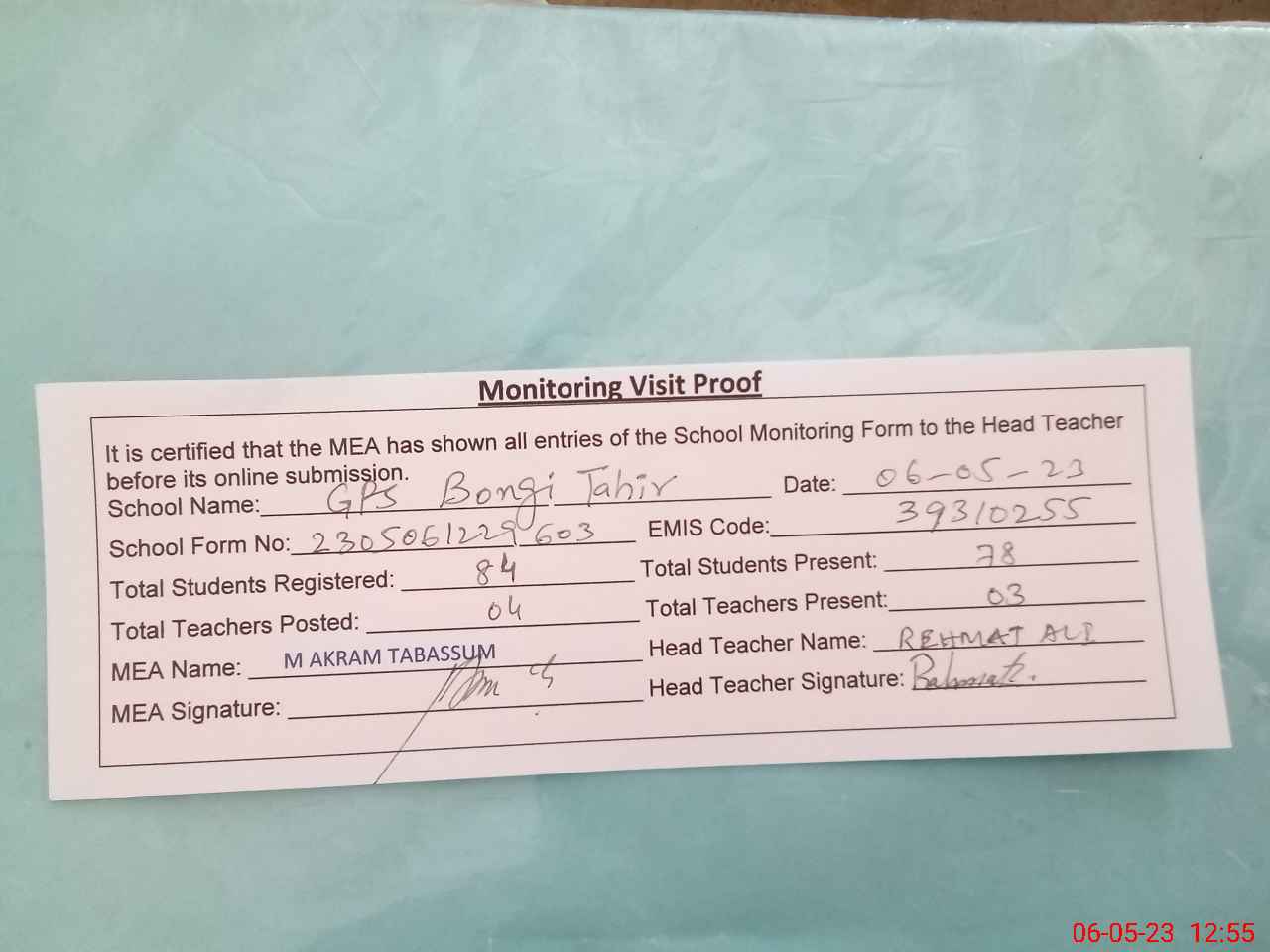 | EMIS Code: 39310255 | Name of School: GPS BONGI TAHIR | |||