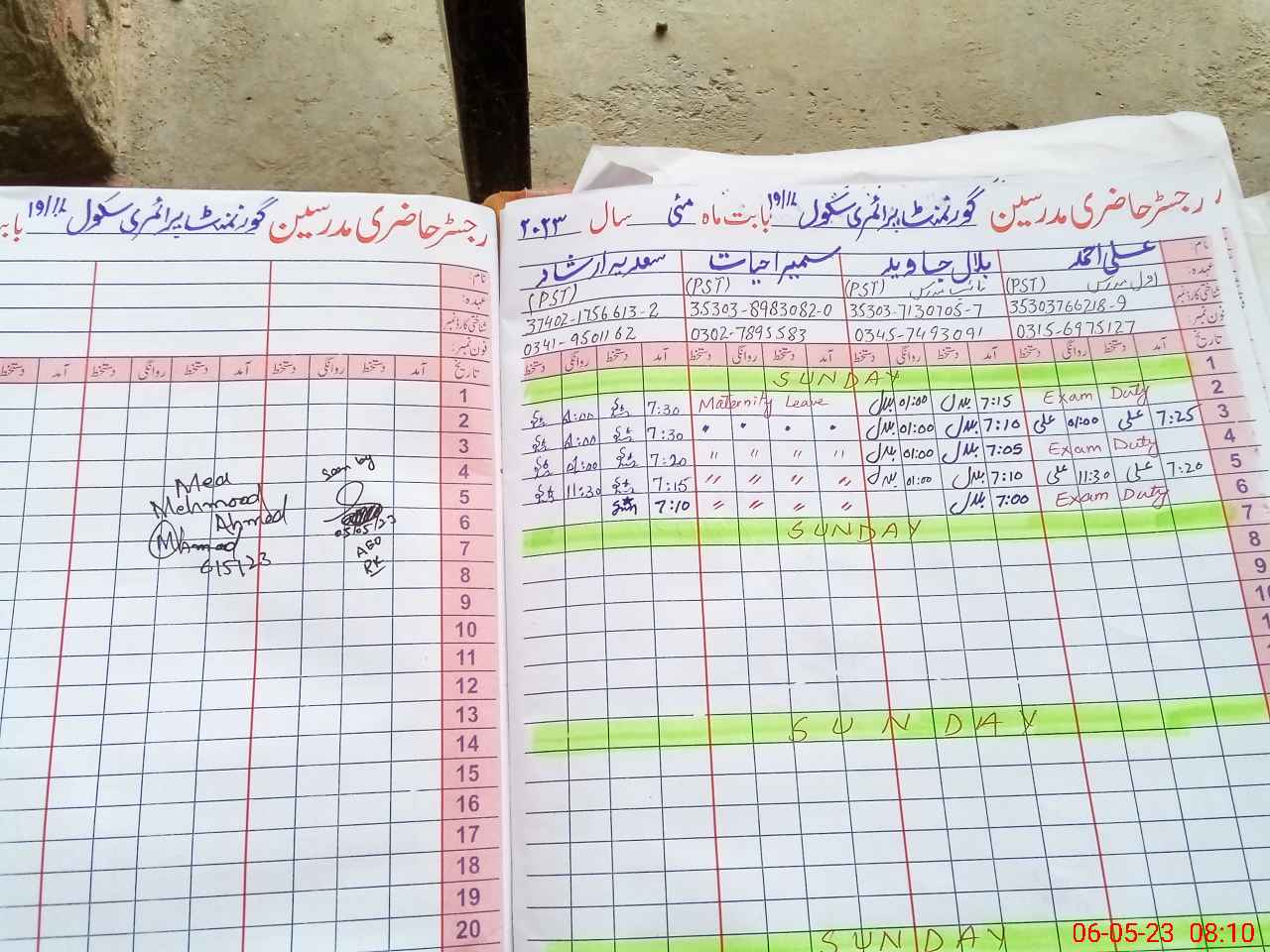| Name: Ha**** Kh**** Designation: (School Headmaster's/Headmistress's) PST Phone/Cell Number: 03**** |