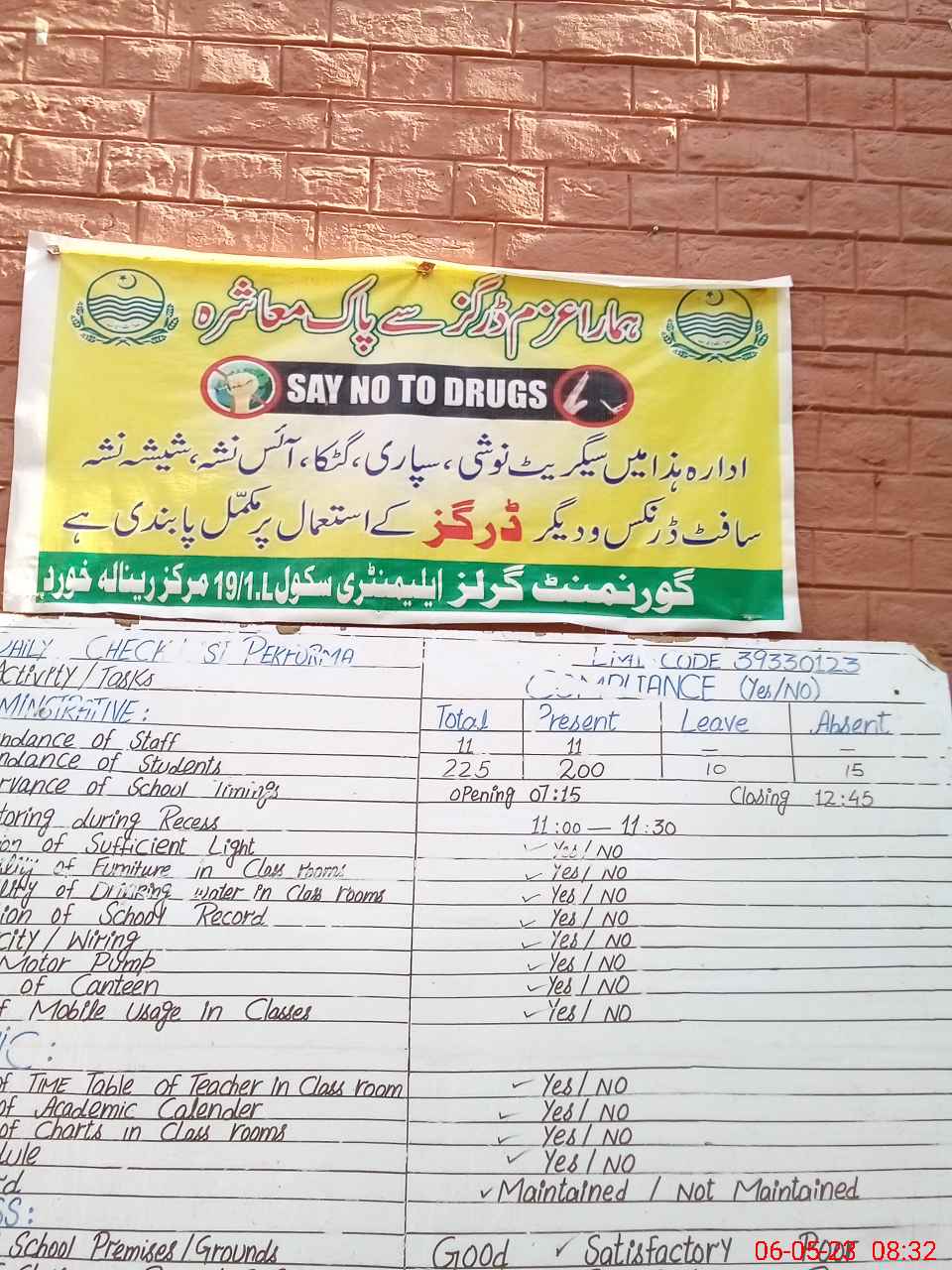 | District: OKARA | Tehsil: RENALA KHURD | Markaz: RENALA KHURD - FEMALE | Level: Middle | |