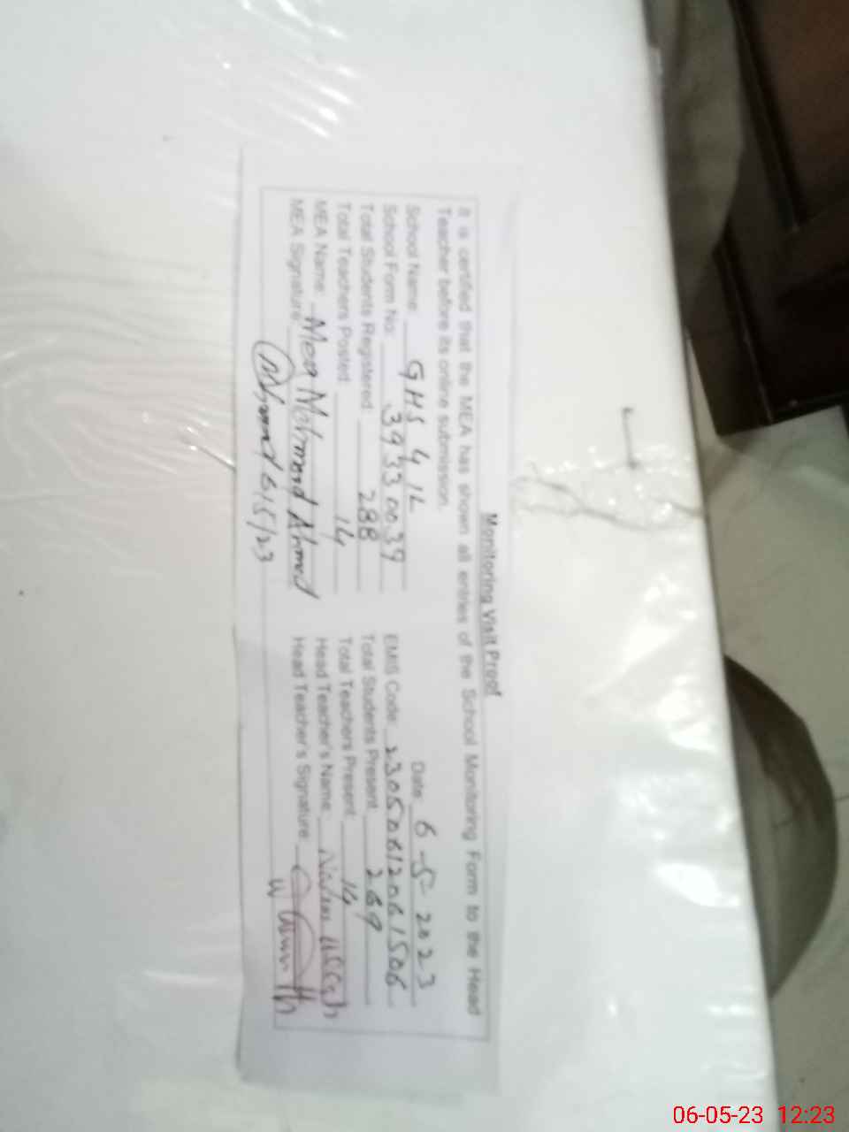 | Attendance Register | Head Teacher | MEA with School | Visit Proof |