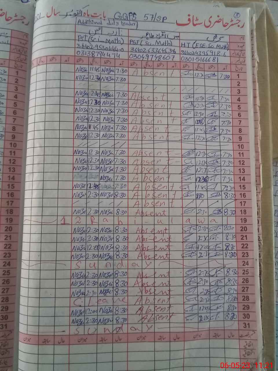 | 36**** | Iq**** Ta**** | PST | Regular | 0 | 0 | 30 | 0 | 0 | 0 | 0 | 0 | 0 | Absent (Un-Authorized) |