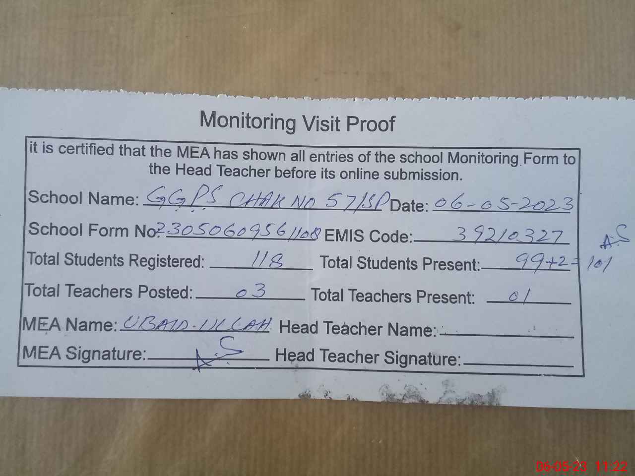 | EMIS Code: 39210327 | Name of School: GGPS 57/SP | |||