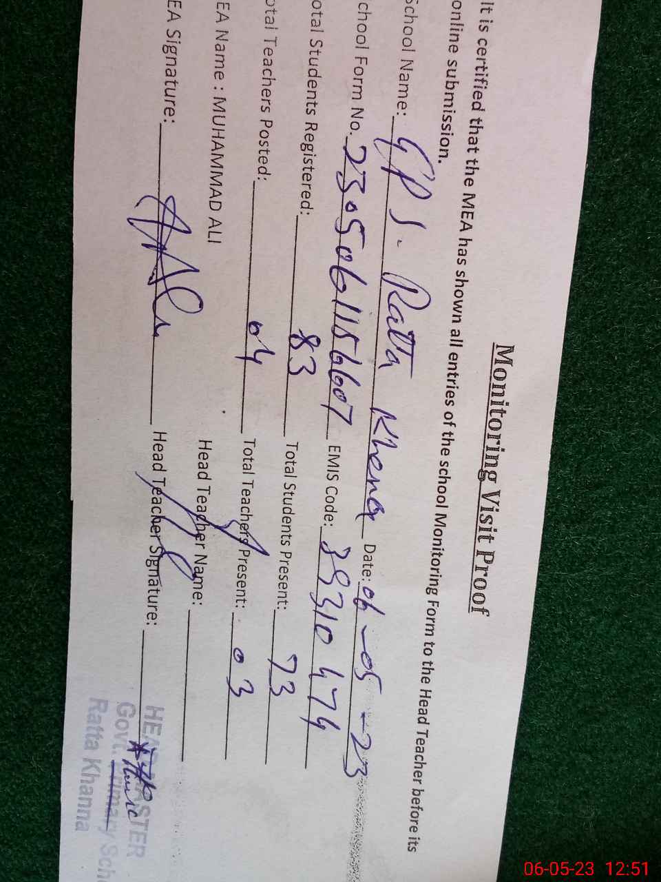 | EMIS Code: 39310474 | Name of School: GPS RATTA KHANA | |||