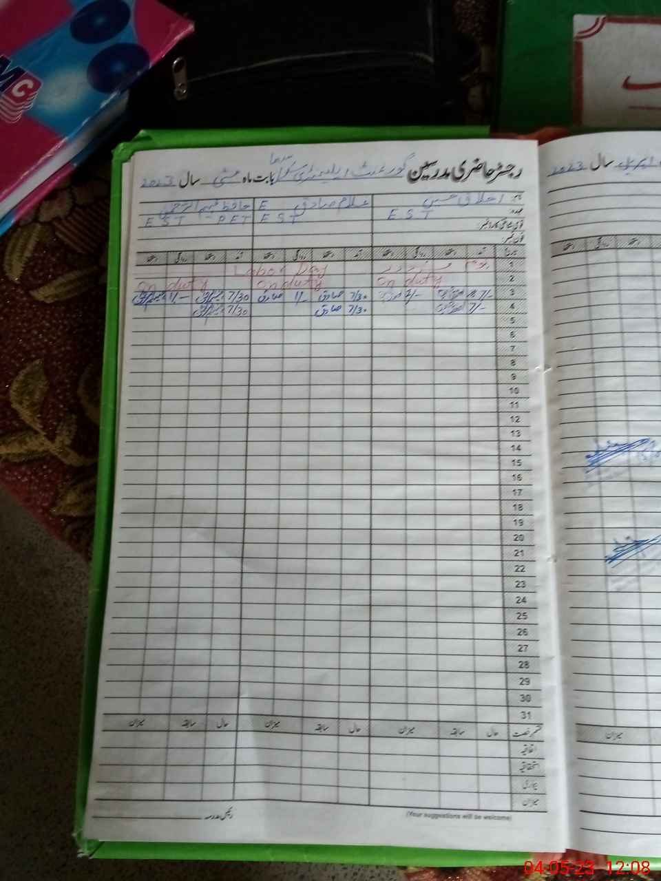 | Leave | Duty | Absent | Maternity | Medical | Ex- Pak |