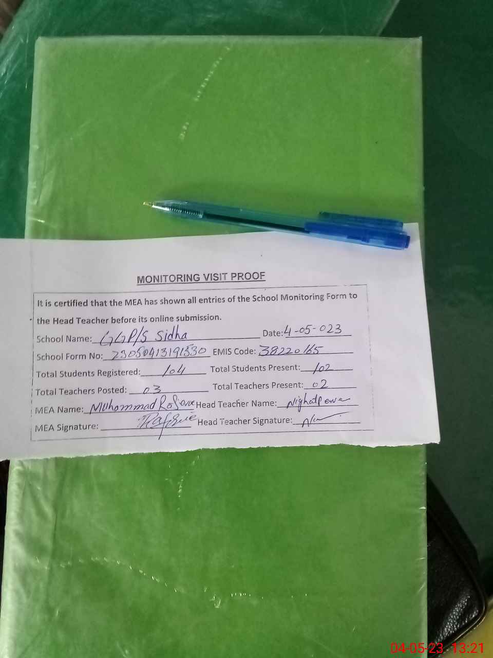 | EMIS Code: 38220165 | Name of School: GGPS SIDHA | |||
