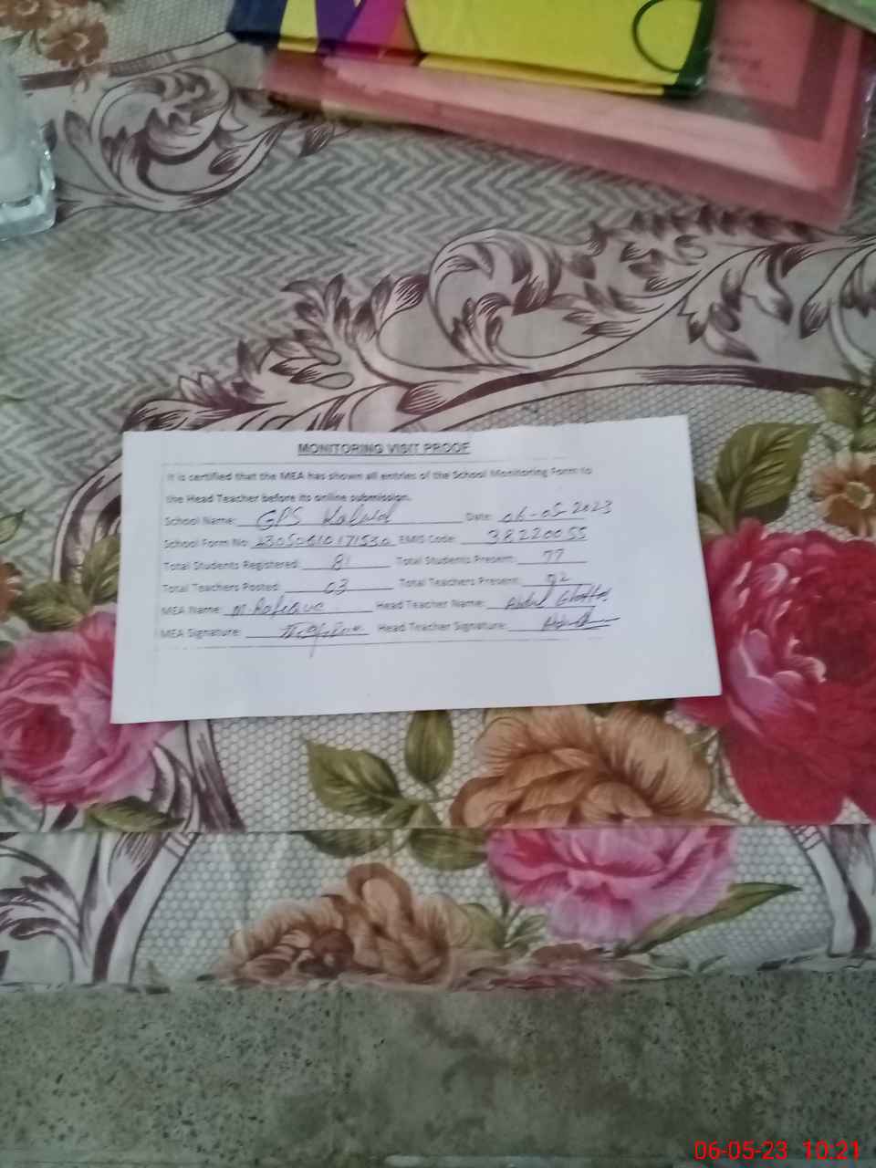 | Attendance Register | Head Teacher | MEA with School | Visit Proof |