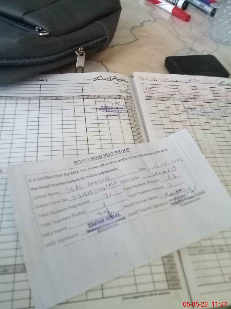 | Attendance Register | Head Teacher | MEA with School | Visit Proof |