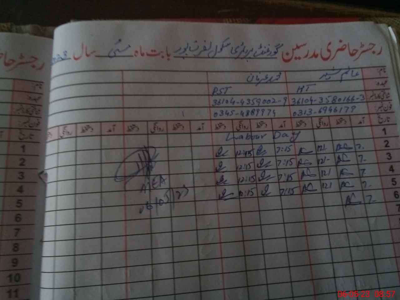 | Name: AL**** SH**** Designation: (School Headmaster's/Headmistress's) PST Phone/Cell Number: 03**** |