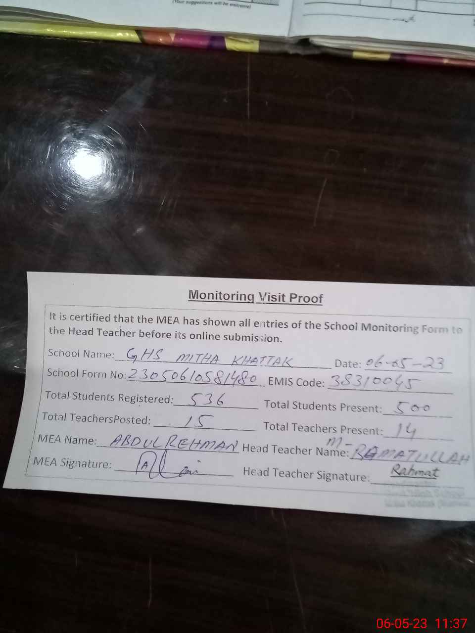 | EMIS Code: 38310045 | Name of School: GHS MITHA KHATAK | |||