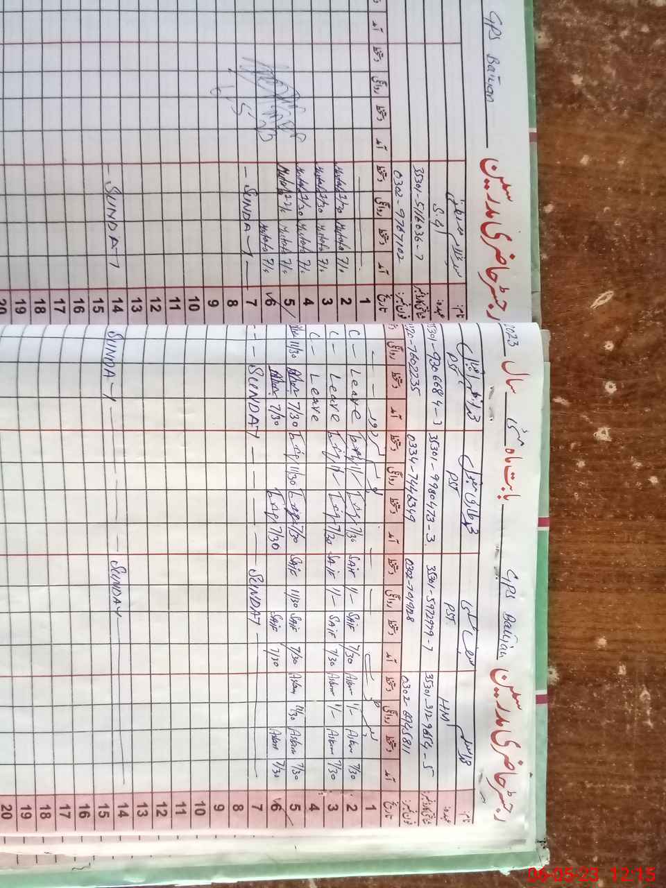 | CNIC | Full Name | Designation | R/C | Absence During Last Calender Month |