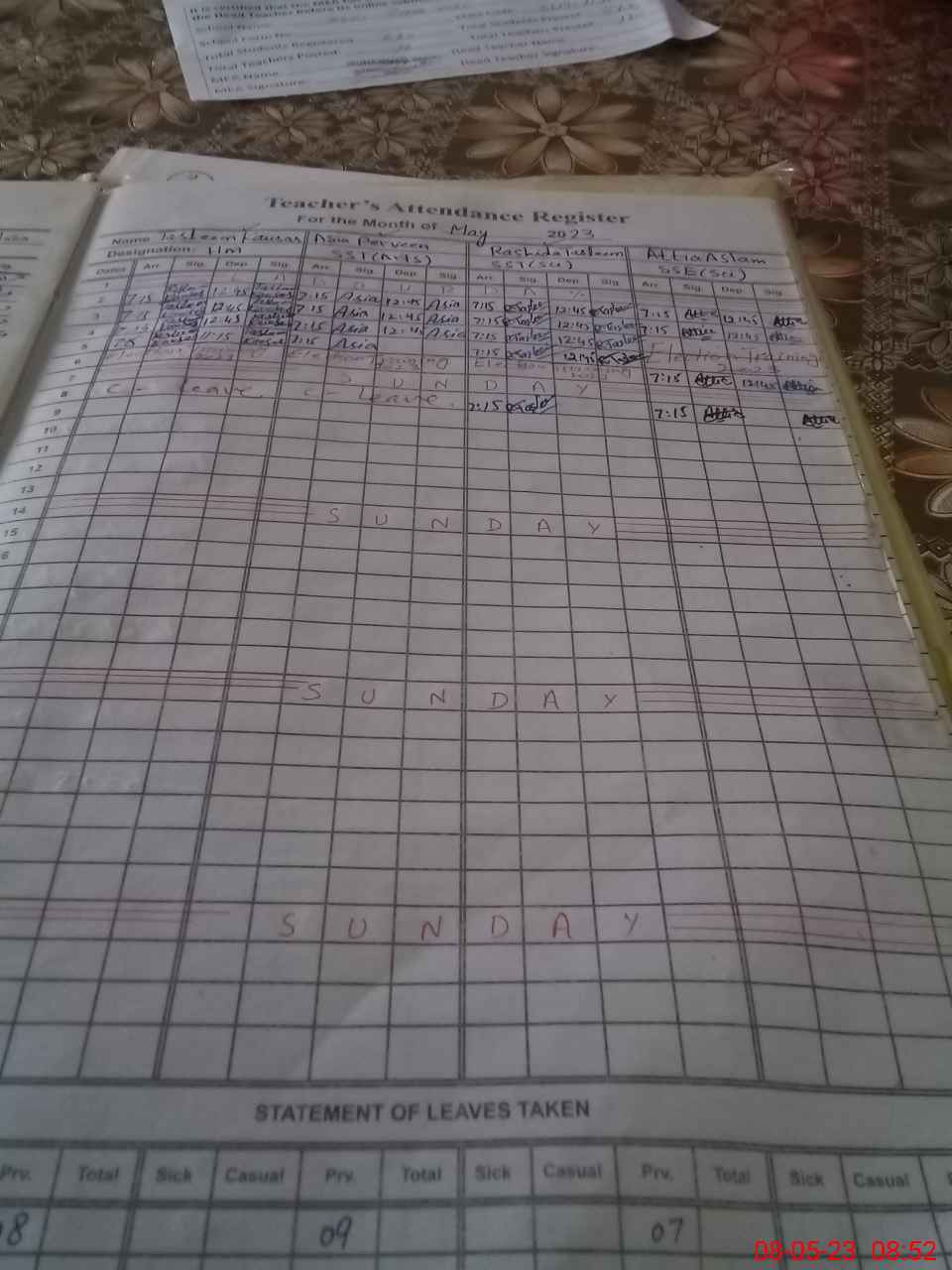 | CNIC | Full Name | Designation | R/C | Absence During Last Calender Month |