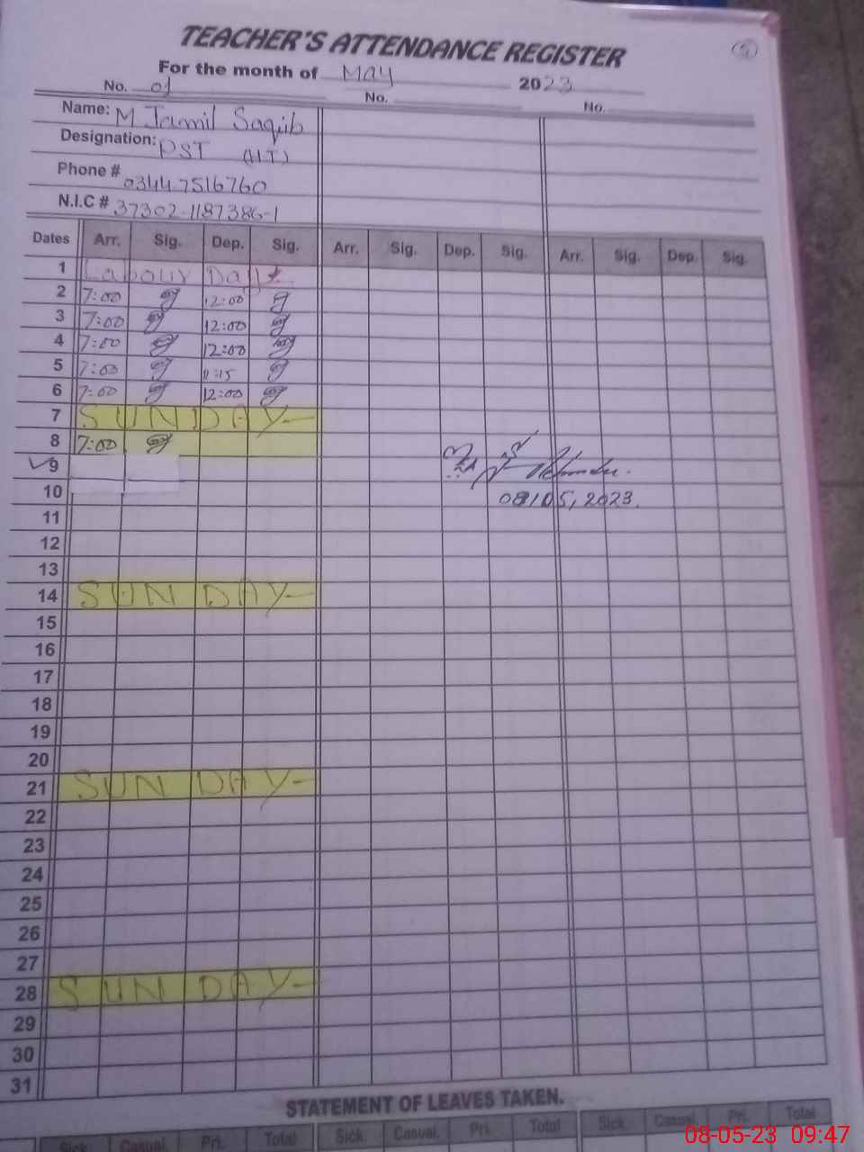 | Name: HA**** AB**** R,**** Designation: (School Headmaster's/Headmistress's) Headmaster Phone/Cell Number: 03**** |