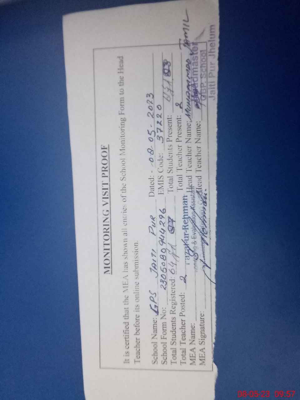 | EMIS Code: 37220150 | Name of School: GPS JATTI PUR | |||