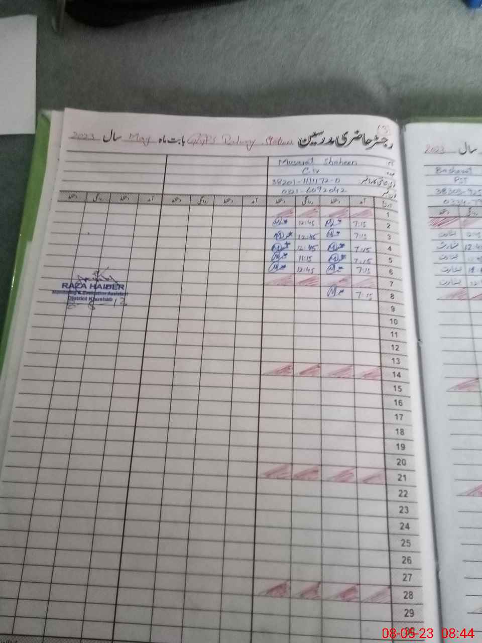 | Name: So**** Na**** Designation: (School Headmaster's/Headmistress's) PST Phone/Cell Number: 03**** |