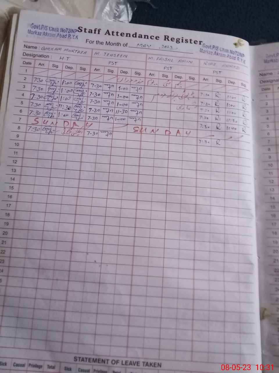 | Name: Mu**** Te**** Designation: (School Headmaster's/Headmistress's) PST Phone/Cell Number: 03**** |