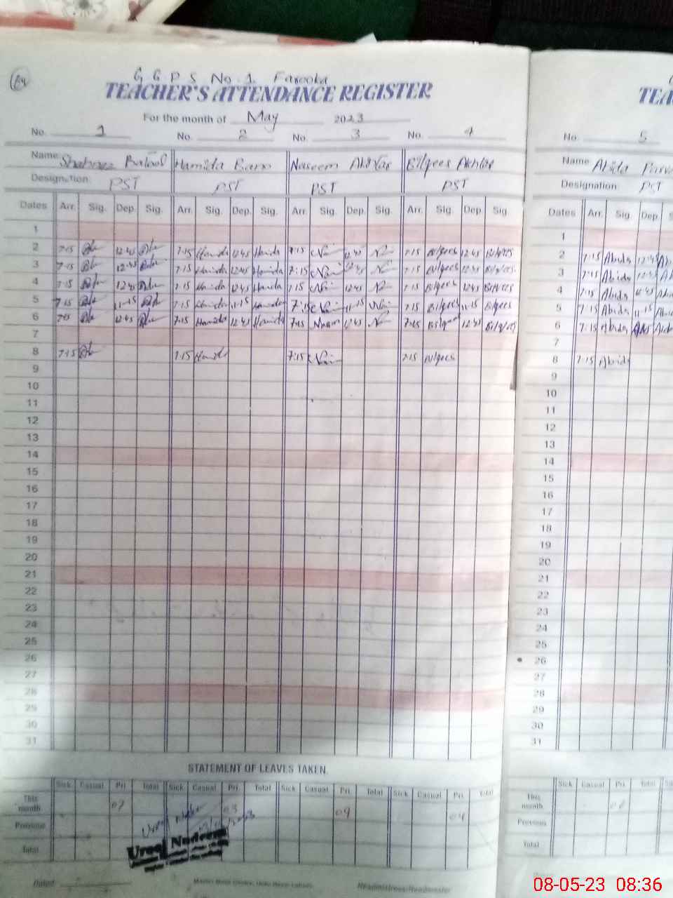 | Leave | Duty | Absent | Maternity | Medical | Ex- Pak |