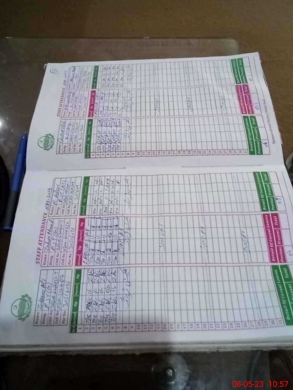 | CNIC | Full Name | Designation | R/C | Absence during last cal. month |