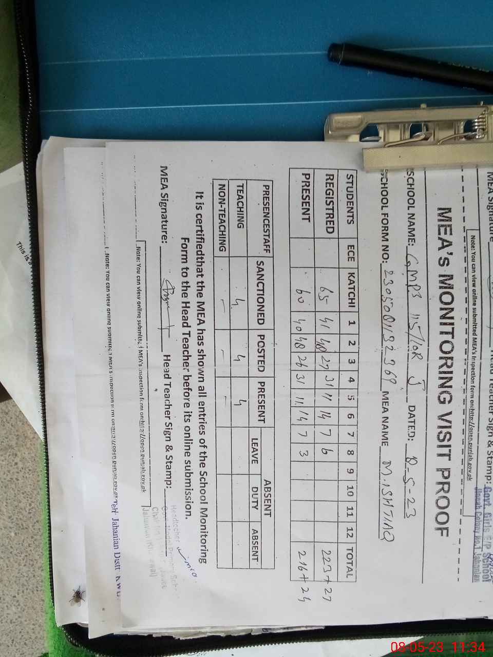 | Attendance Register | Head Teacher | MEA with School | Visit Proof |