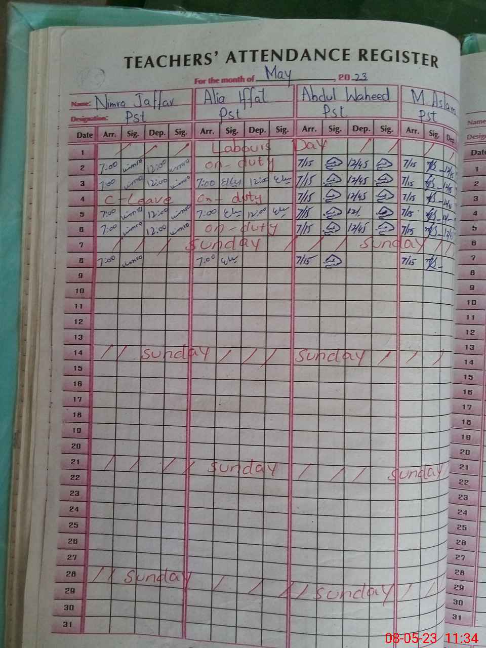 | CNIC | Full Name | Designation | R/C | Absence During Last Calender Month |