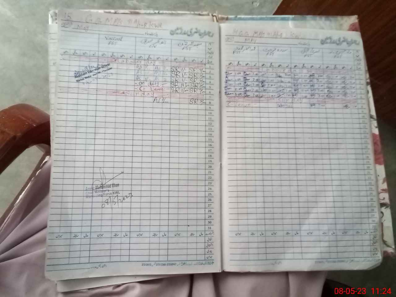 | CNIC | Full Name | Designation | R/C | Absence During Last Calender Month |