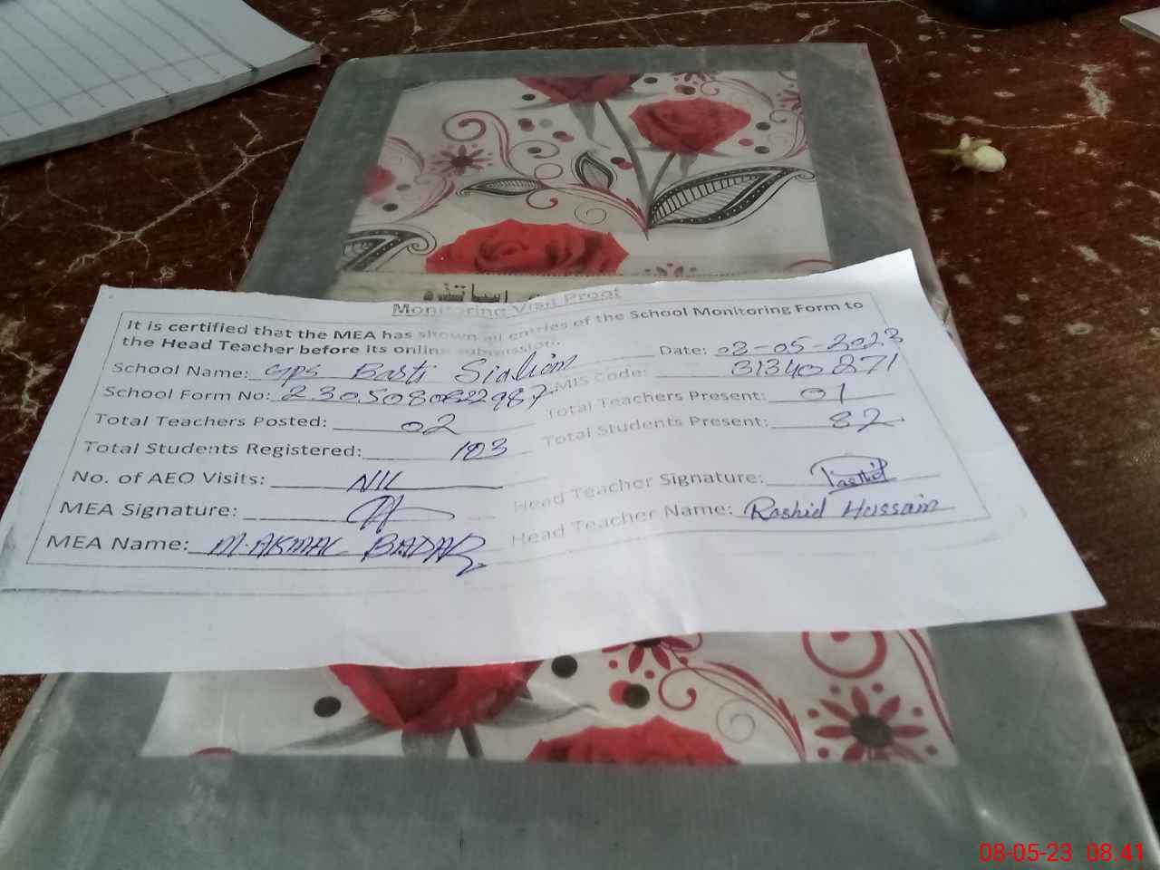 | Certified that this School was Inspected by the Undersigned MEA/DMO Today and the Information Stated Above is as Per Record. | |||||