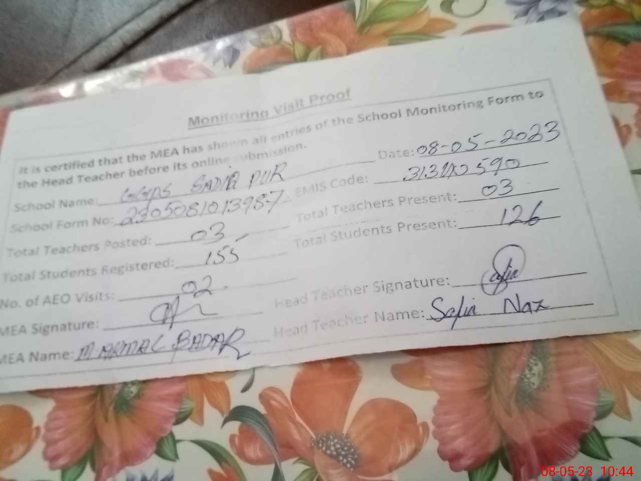 | EMIS Code: 31340590 | Name of School: GGPS SADIQ PUR | |||