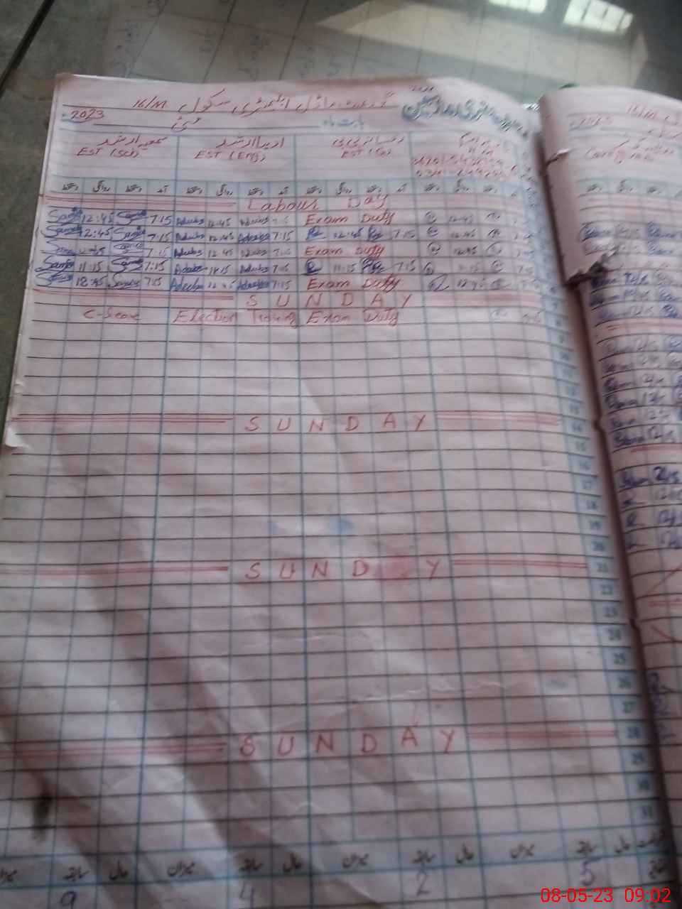 | 36**** | Ab**** Ha**** Bh**** | PST | Regular | 0 | 2 | 0 | 0 | 0 | 0 | 0 | 0 | 0 | Exam Duty |