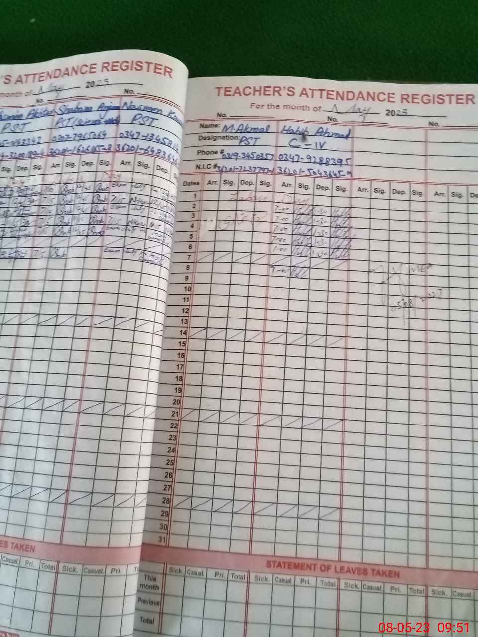 | Name: Ya**** Designation: (School Headmaster's/Headmistress's) PST Phone/Cell Number: 03**** |