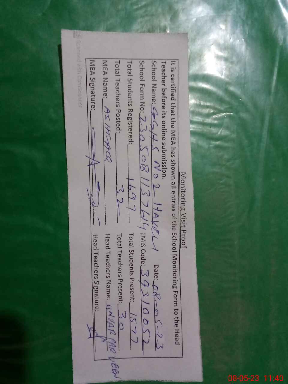 | Certified that this School was Inspected by the Undersigned MEA/DMO Today and the Information Stated Above is as Per Record. | |||||