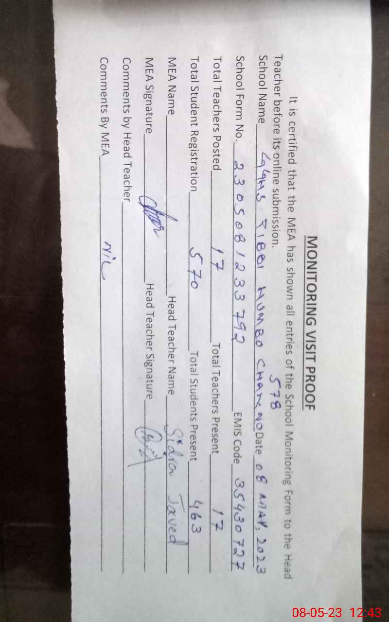| EMIS Code: 35430727 | Name of School: GGHS TIBBI HUMBO CHAK NO 578 | |||