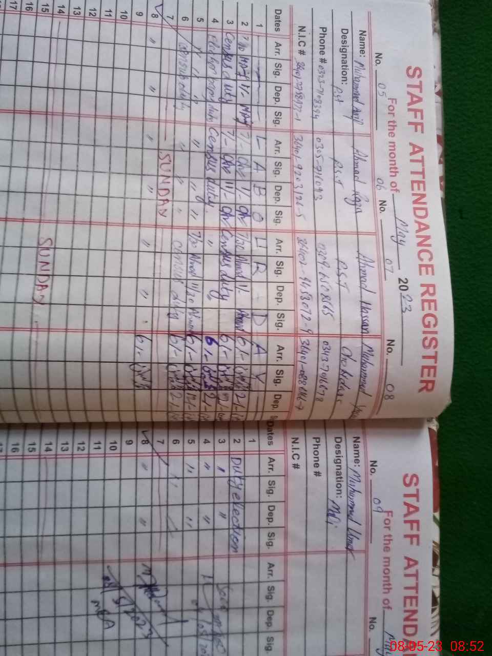 | CNIC | Full Name | Designation | R/C | Absence During Last Calender Month |