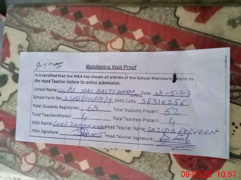 | Attendance Register | Head Teacher | MEA with School | Visit Proof |