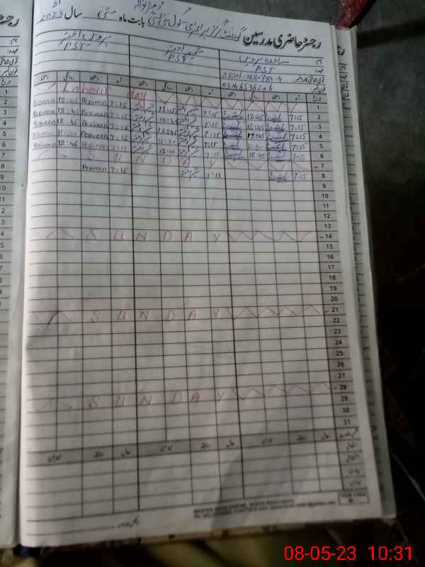 | CNIC | Full Name | Designation | R/C | Absence During Last Calender Month |