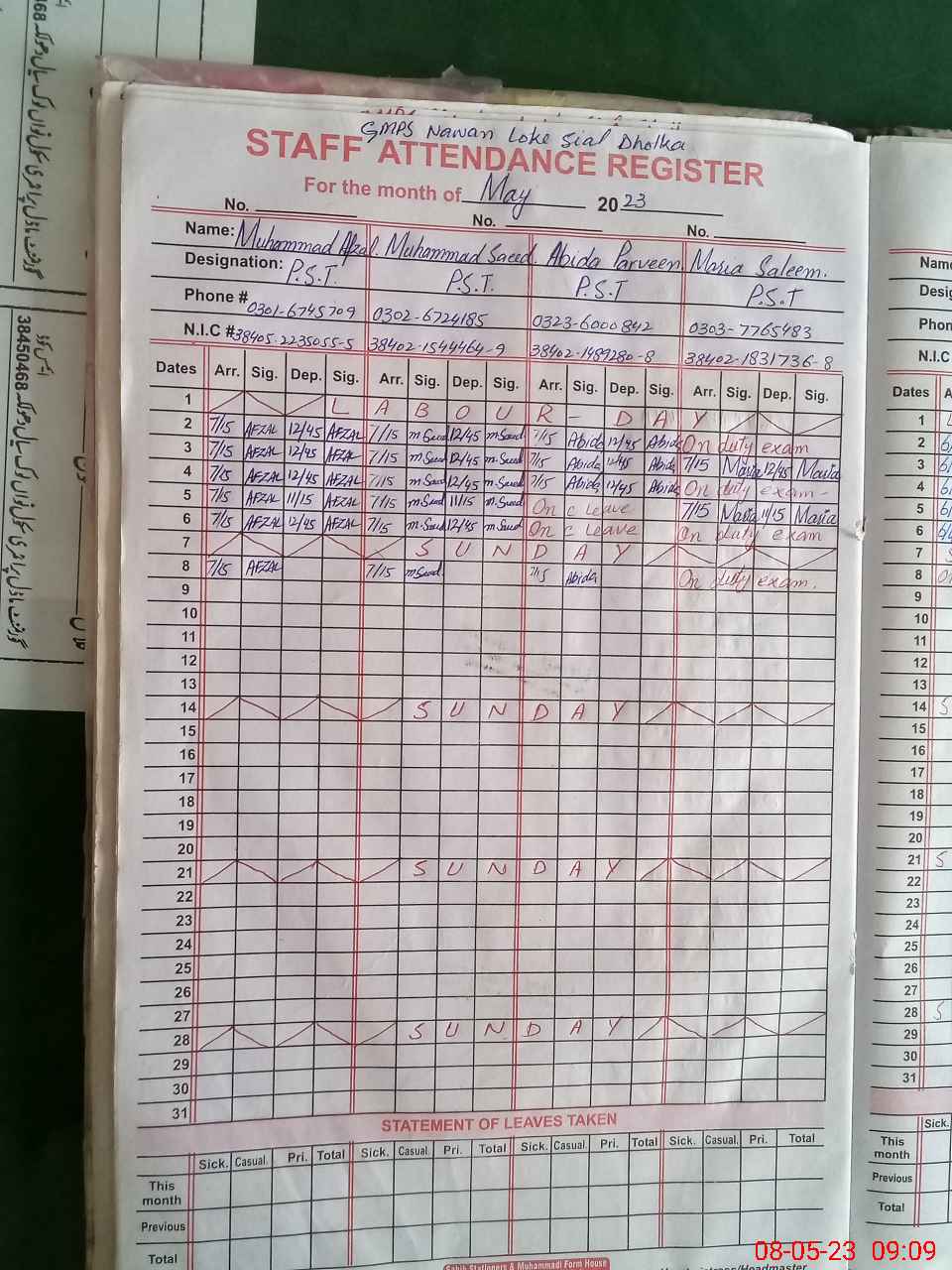| Name: Mu**** Af**** Designation: (School Headmaster's/Headmistress's) P S T Phone/Cell Number: 03**** |