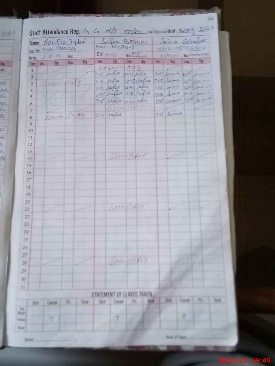 | 31**** | So**** Iq**** | Regular | 0 | 30 | 0 | 0 | 0 | 0 | 0 | 0 | 0 | Exam Duty | |