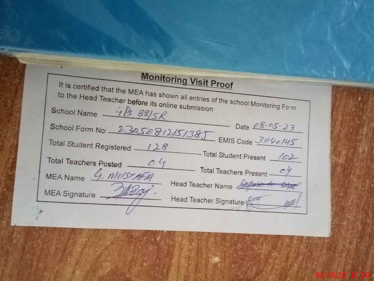 | EMIS Code: 31140145 | Name of School: GPS CHAK NO 88/5-R | |||
