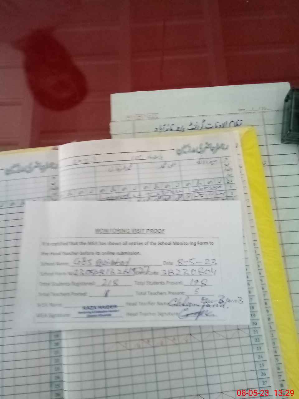 | Attendance Register | Head Teacher | MEA with School | Visit Proof |