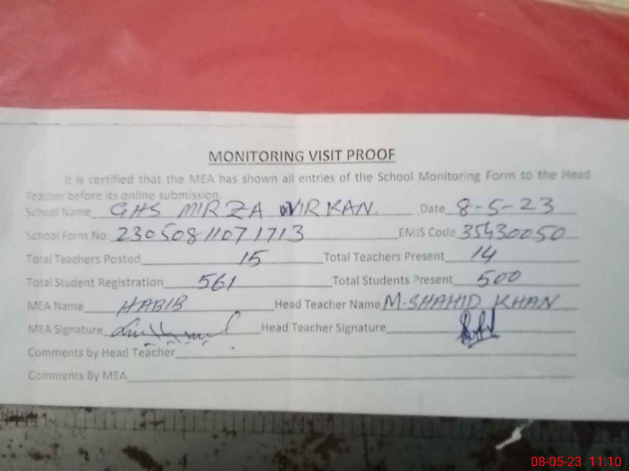 | EMIS Code: 35430050 | Name of School: GHS MIRZA VIRKAN | |||