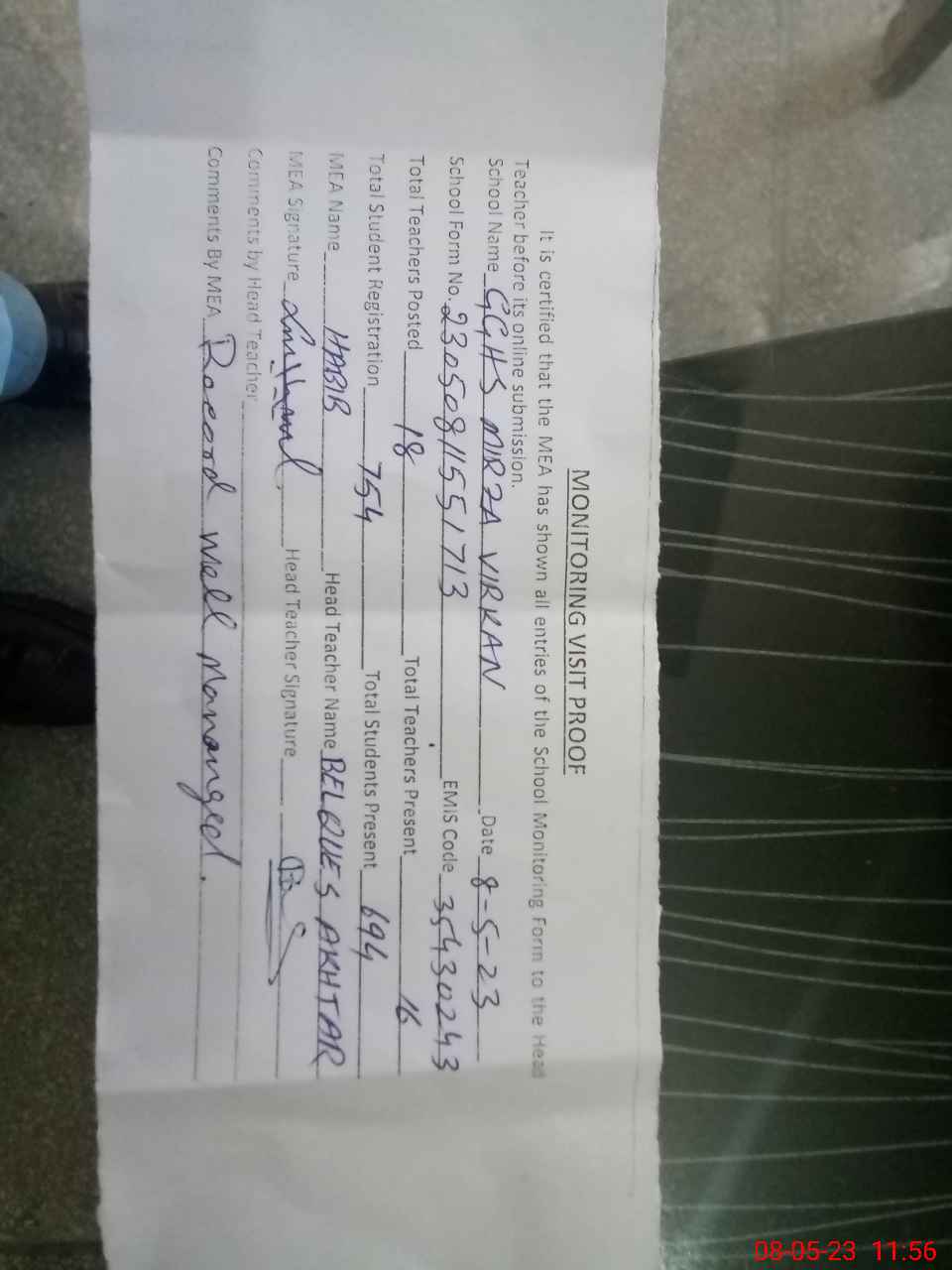 | EMIS Code: 35430243 | Name of School: GGHS MIRZA VIRKAN | |||