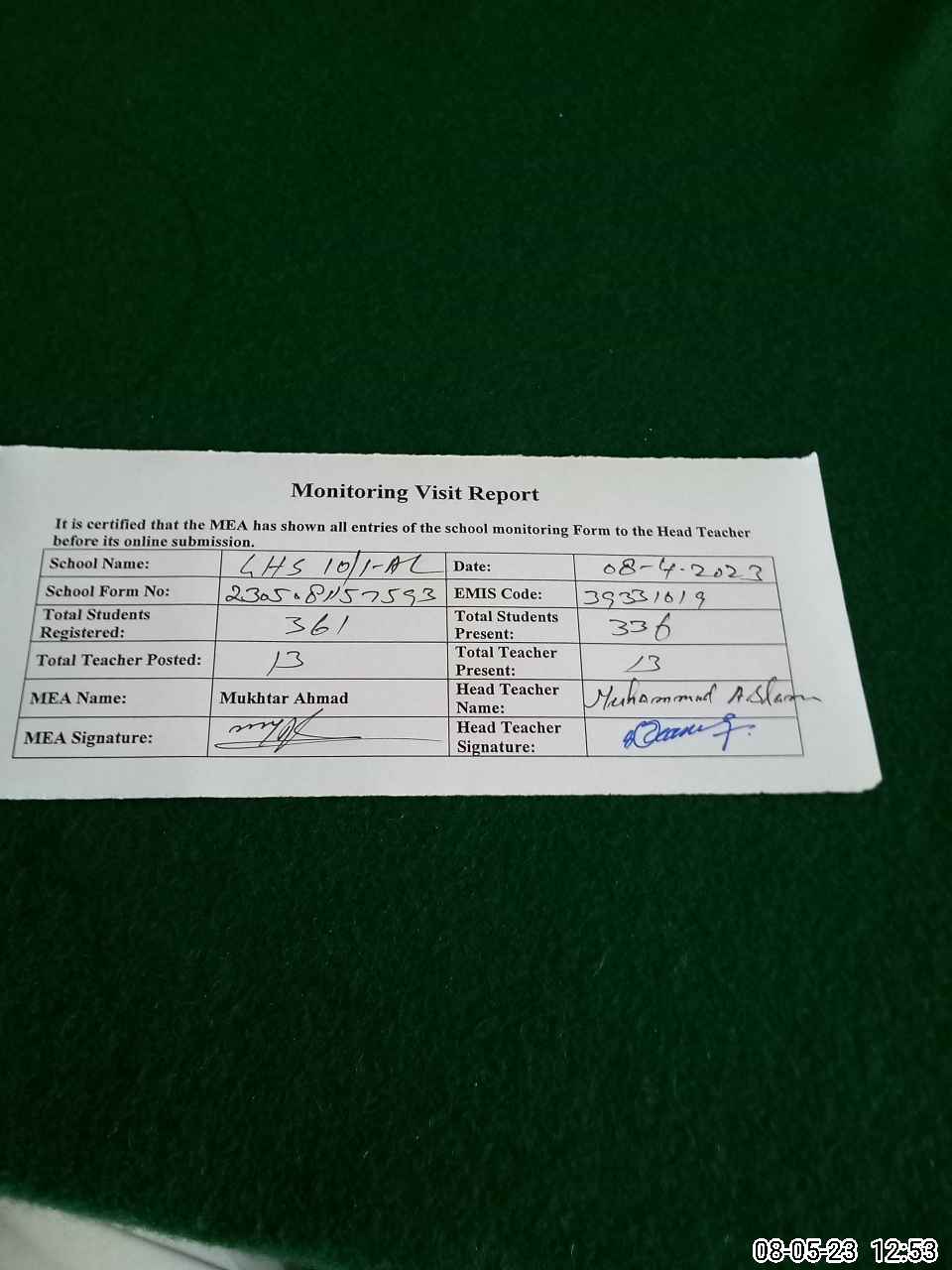 | EMIS Code: 39331019 | Name of School: GHS CHAK 10/1-AL | |||