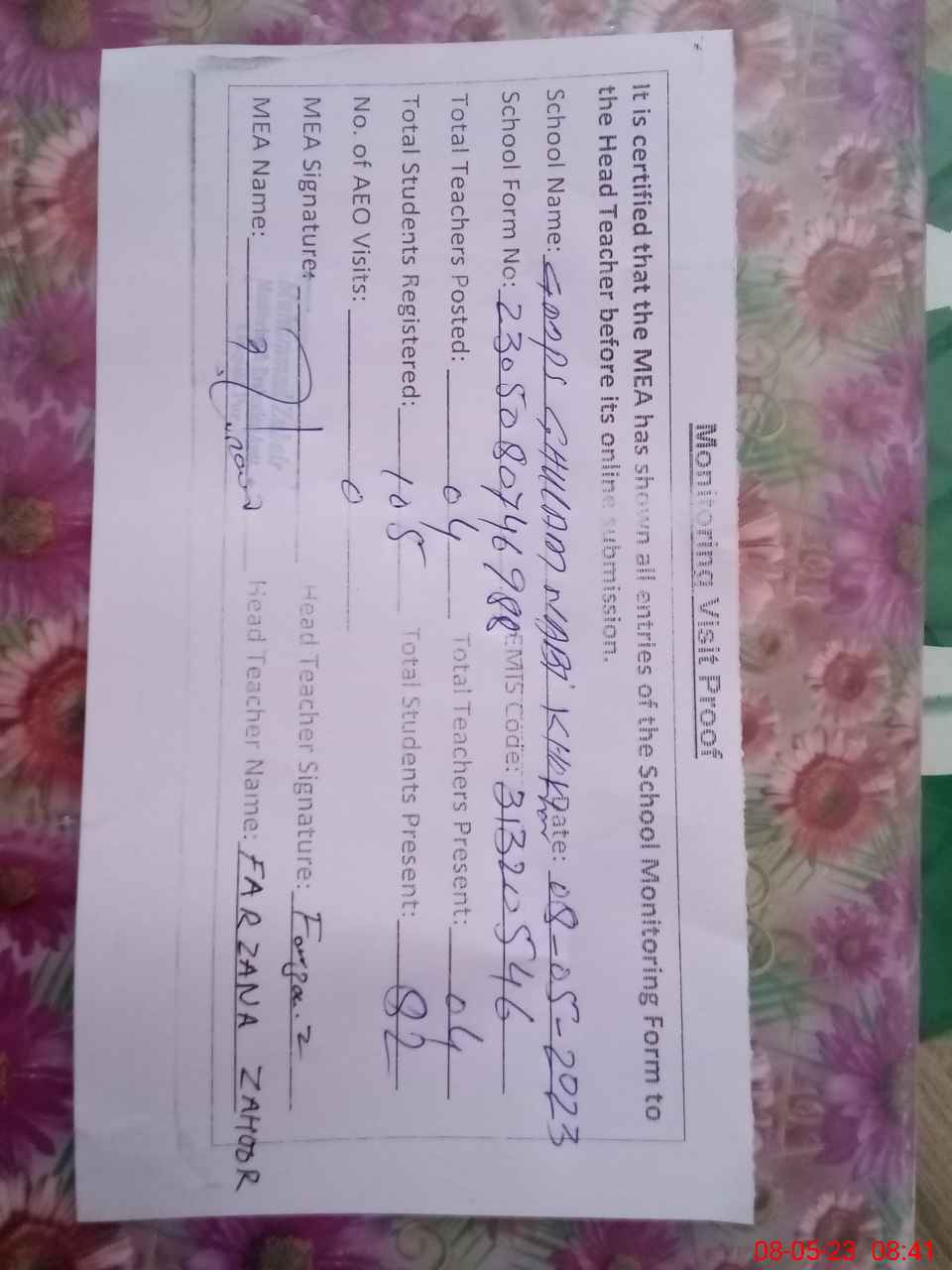 | EMIS Code: 31320546 | Name of School: GMPS GHULAM NABI KHUKHAR | |||