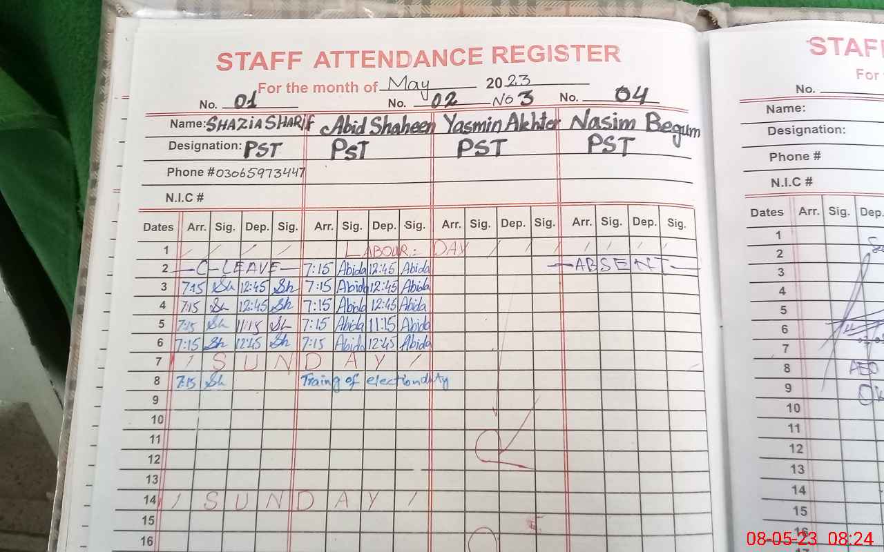 | 35**** | Na**** Ba**** | PST | Regular | 0 | 0 | 30 | 0 | 0 | 0 | 0 | 0 | 0 | Absent (Un-Authorized) |
