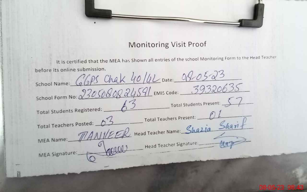 | EMIS Code: 39320635 | Name of School: GGPS CHAK NO. 40/4-L | |||