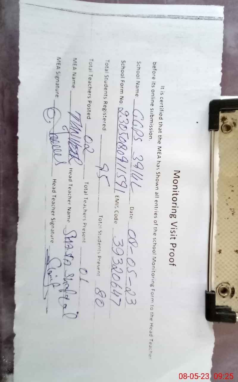 | Attendance Register | Head Teacher | MEA with School | Visit Proof |