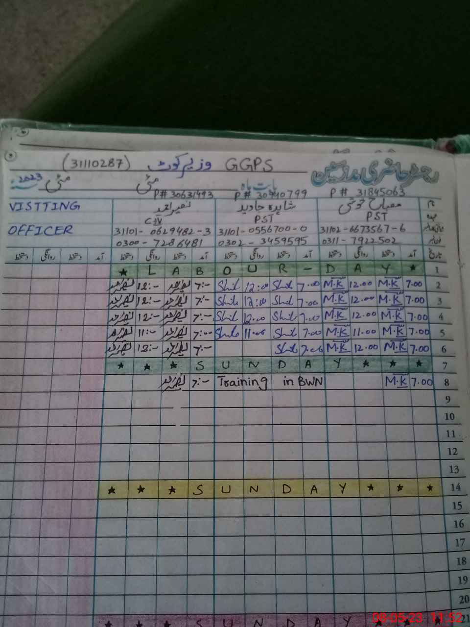 | EMIS Code: 31110287 | Name of School: GGPS WAZIR KOT | |||