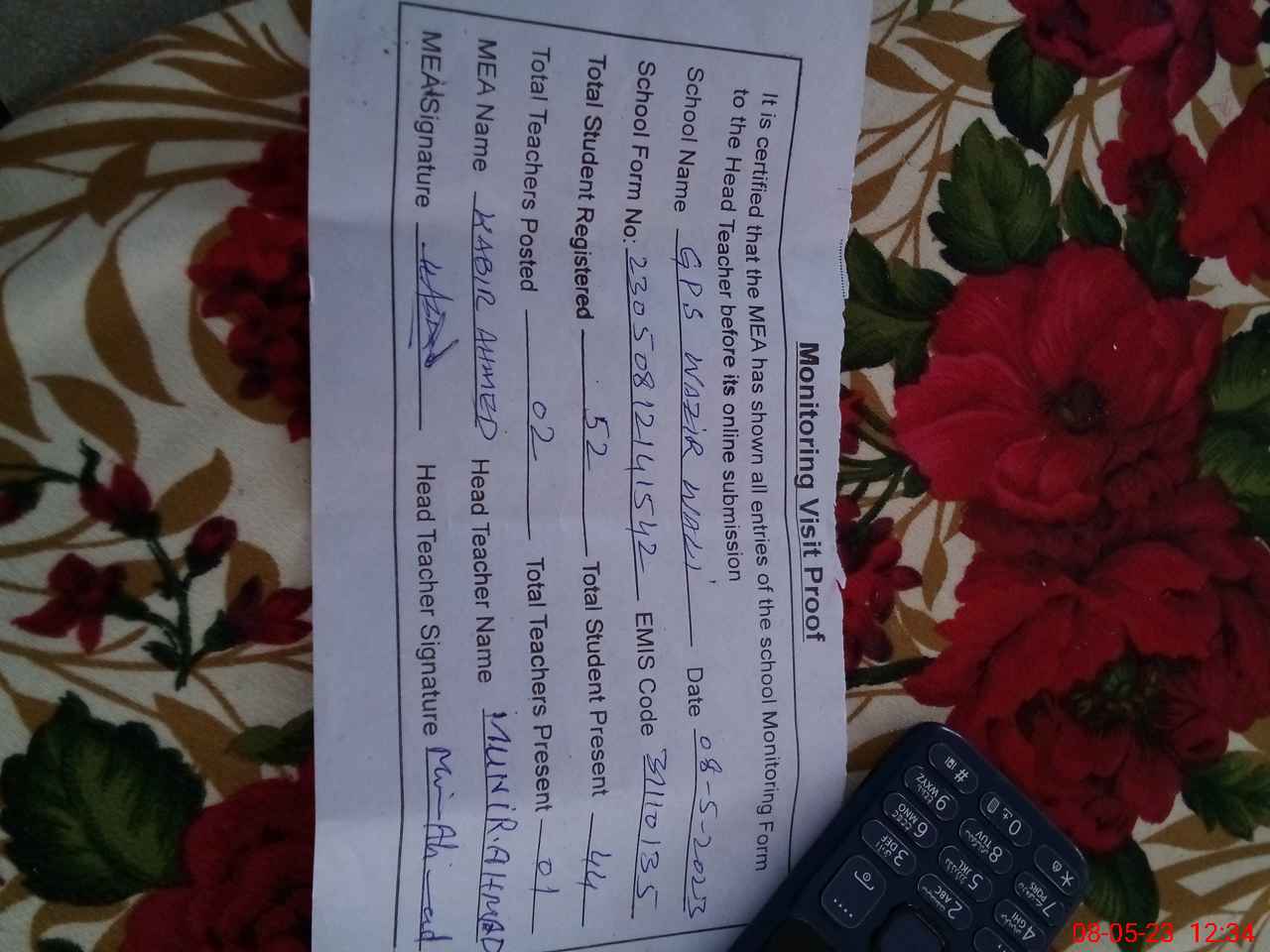 | EMIS Code: 31110135 | Name of School: GPS WAZIR WALI | |||