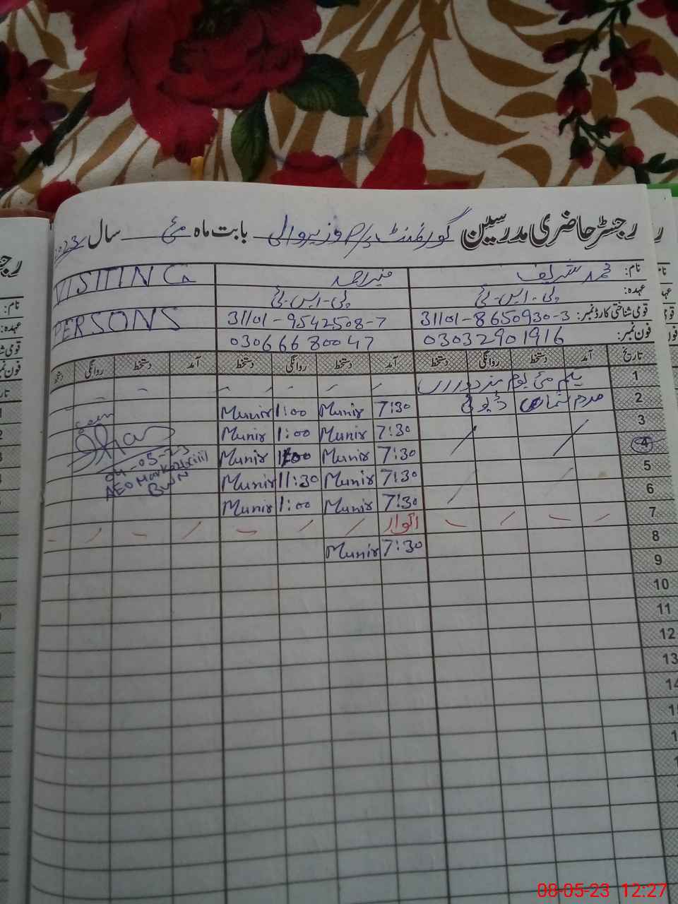| Name: Mo**** Sh**** Designation: (School Headmaster's/Headmistress's) Pst Phone/Cell Number: 03**** |