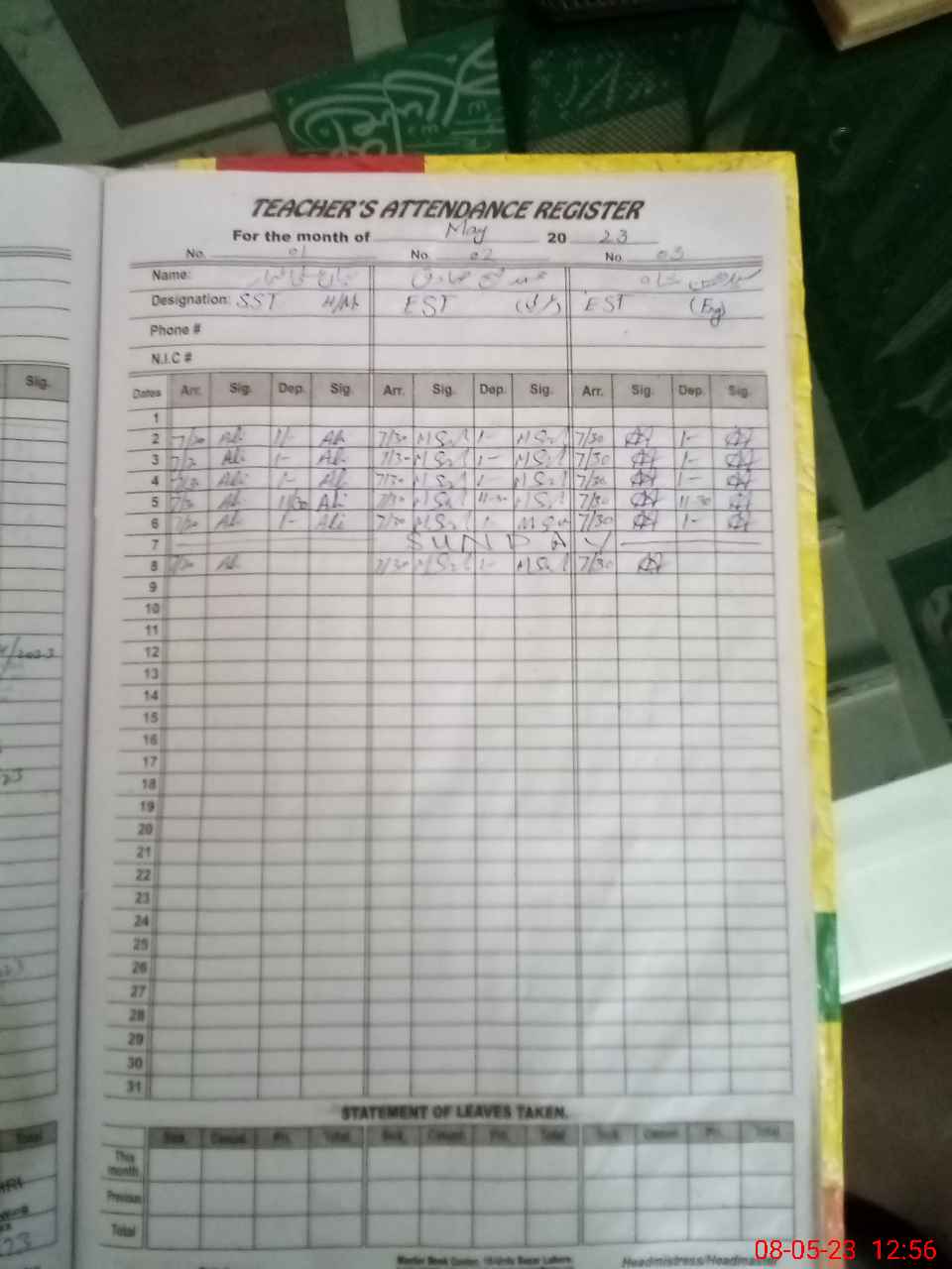| 35**** | Ka**** Al**** Bh**** | PST | Regular | 0 | 27 | 0 | 0 | 0 | 0 | 0 | 0 | 0 | Exam Duty |