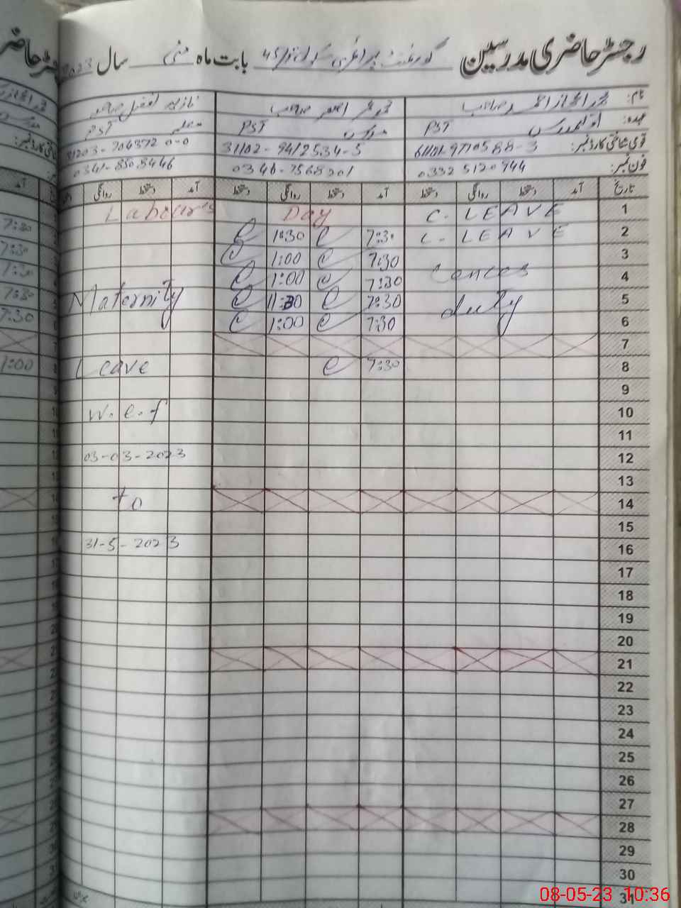 | 31**** | Na**** Af**** | PST | Regular | 30 | 0 | 0 | 30 | 0 | 0 | 0 | 0 | 0 | Maternity |