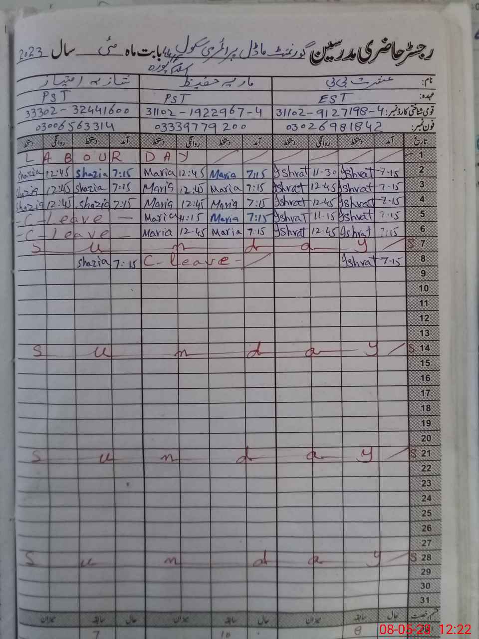 | Name: IS**** BB Designation: (School Headmaster's/Headmistress's) EST Phone/Cell Number: 03**** |